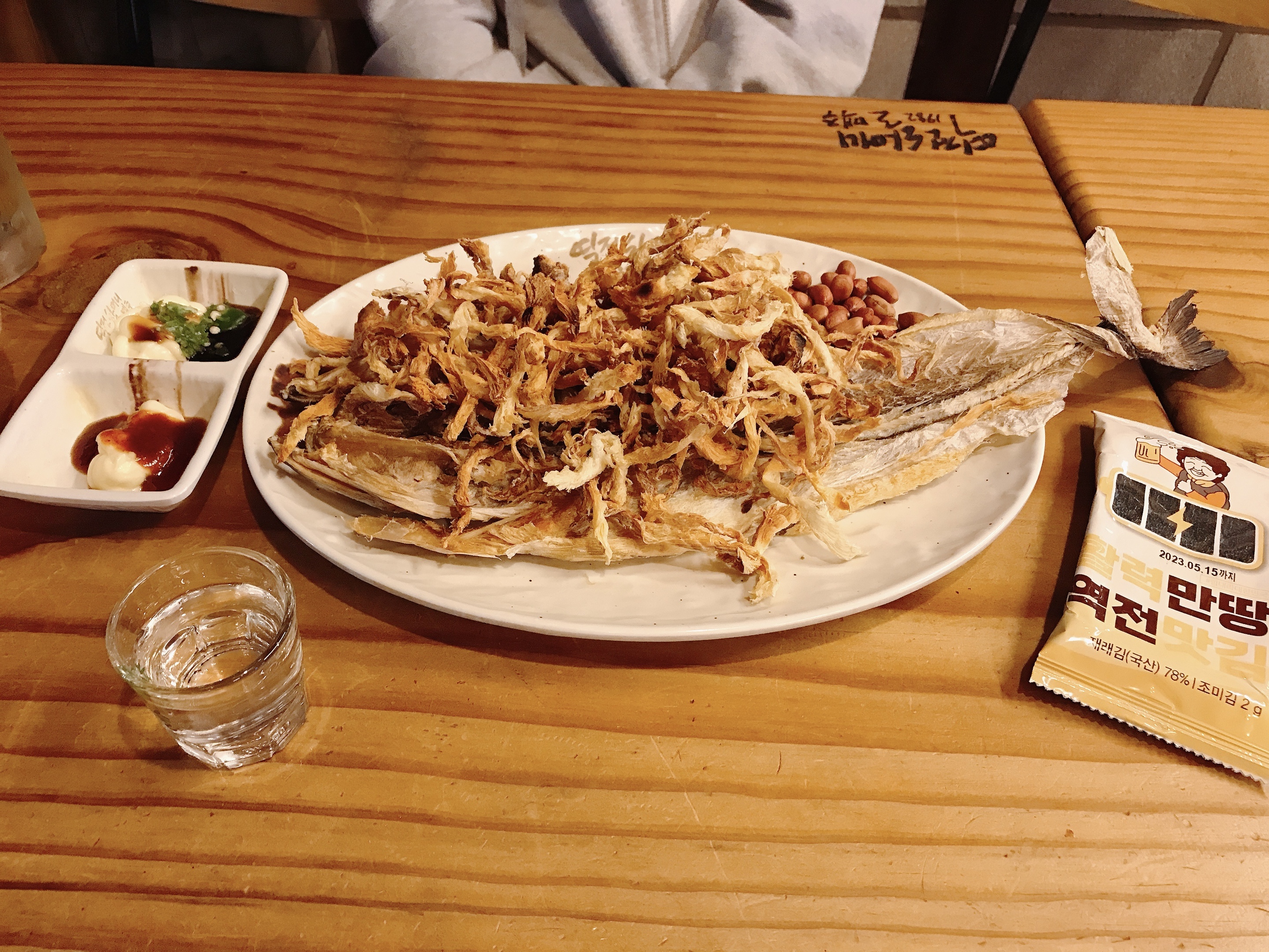 데이트, 술자리 : H은이와 "역전할머니맥주"에 갔다. 먹태(353kcal), 소주(2병, 982kcal). [1,335kcal].